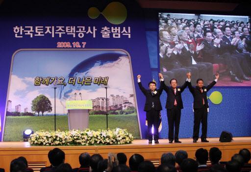| A ceremony picture for establishing and kicking off a new 'LH' corporation after merging Korea Land Corp. and Korea Housing Corp. following a new law. Oct., 2009. |