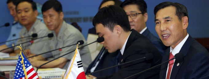 In a meeting with officials of the ruling Saenuri Party in Seoul on July 18, South Korean Minister of National Defense Kim Kwan-jin expressed hope that both countries will make a conclusion on the OPCON issue in a Security Consultative Meeting (SCM) slated for October in Seoul, according to a ruling party official who attended the meeting.
