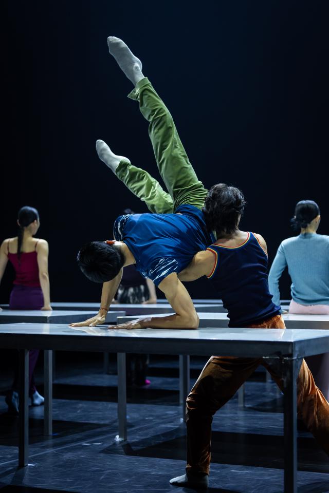 When the lights rose again, the stage transformed for Kim Sungyong’s “Crawl,” a work built around the opposite idea: freedom. Open space replaced the rows of tables. Rolling and flexing bodies moved with a breath-like rhythm, expanding and contracting as if discovering the stage anew.