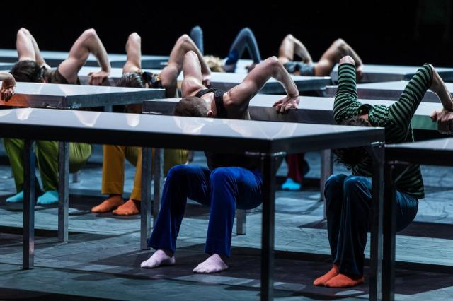 Discipline is the axis of American choreographer William Forsythe’s “One Flat Thing, Reproduced.” The tables impose strict rules: confined space, exact timing, predetermined pathways. The dancers must sense one another with the precision of orchestra players, never missing a cue.