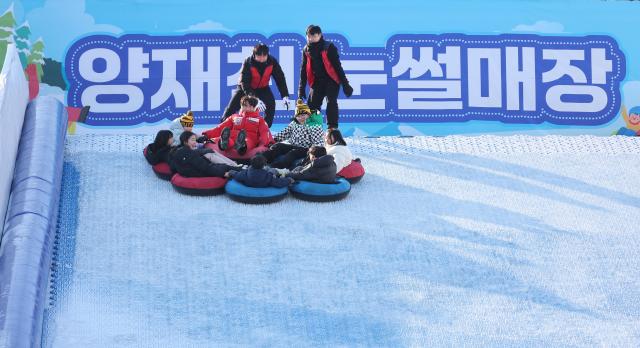 Seocho District has converted the Yangjaecheon swimming pool site into a family-friendly “Winter Snow Playground,” which has been operating since Dec. 20. Now in its third year, the venue repurposes a 6,400-square-meter former outdoor pool into an urban sledding park, providing children and parents with a safe and accessible winter recreation space.