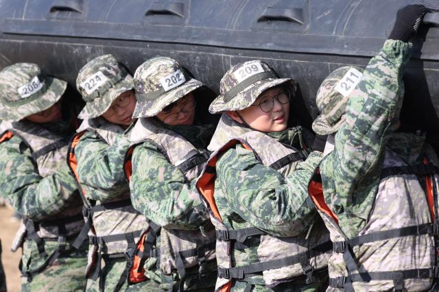 Participants take part in training during the 2026 Winter Marine Corps Camp at the 1st Marine Division in Pohang North Gyeongsang Province on Jan 13 2026 Yonhap
