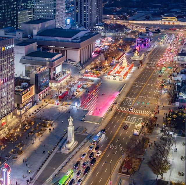 Gwanghwamun Square serves as the historical and political center of South Korea. Situated at the northern end of Sejong-ro, the site is home to the statues of King Sejong the Great and Admiral Yi Sun-sin and serves as the gateway to Gyeongbokgung Palace. The square has long been a focal point for South Korean public life, hosting everything from the 2002 World Cup street cheering to the 2016 candlelight vigils.